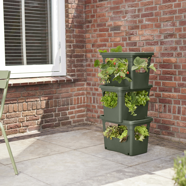 De green basics stack & grow large; een geweldige nieuwe manier om je eigen groenten, kruiden en fruit te kweken. Deze kratten kun je op elkaar stapelen en zo de hoogte in gaan. Ideaal als je een kleine tuin of balkon hebt.