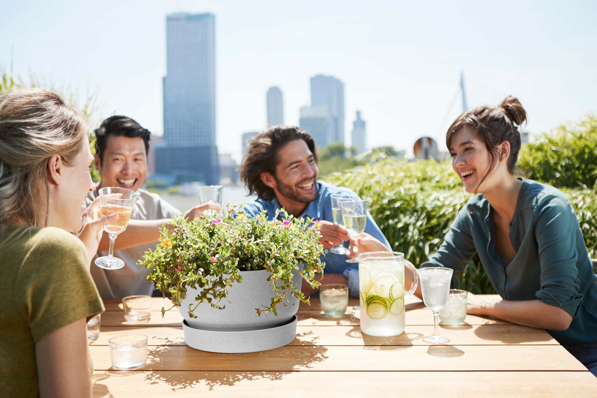 De greenville collectie combineert moderne, elegante design trends met een slimme en praktische oplossing waarmee je zonder moeite voor je planten kan zorgen. Het strakke, naadloze ontwerp van de greenville verbergt een handig, geïntegreerd waterreservoir dat er voor zorgt dat jouw plant altijd genoeg water heeft. De bloempotten zijn beschikbaar in verschillende, natuurlijke kleuren en past perfect bij de groene vibes in jouw huis of tuin. Omdat we bij elho niet alleen de natuur dichterbij willen halen, maar de natuur ook graag behouden, is deze greenville plantenbak gemaakt van 100% gerecycled materiaal.
