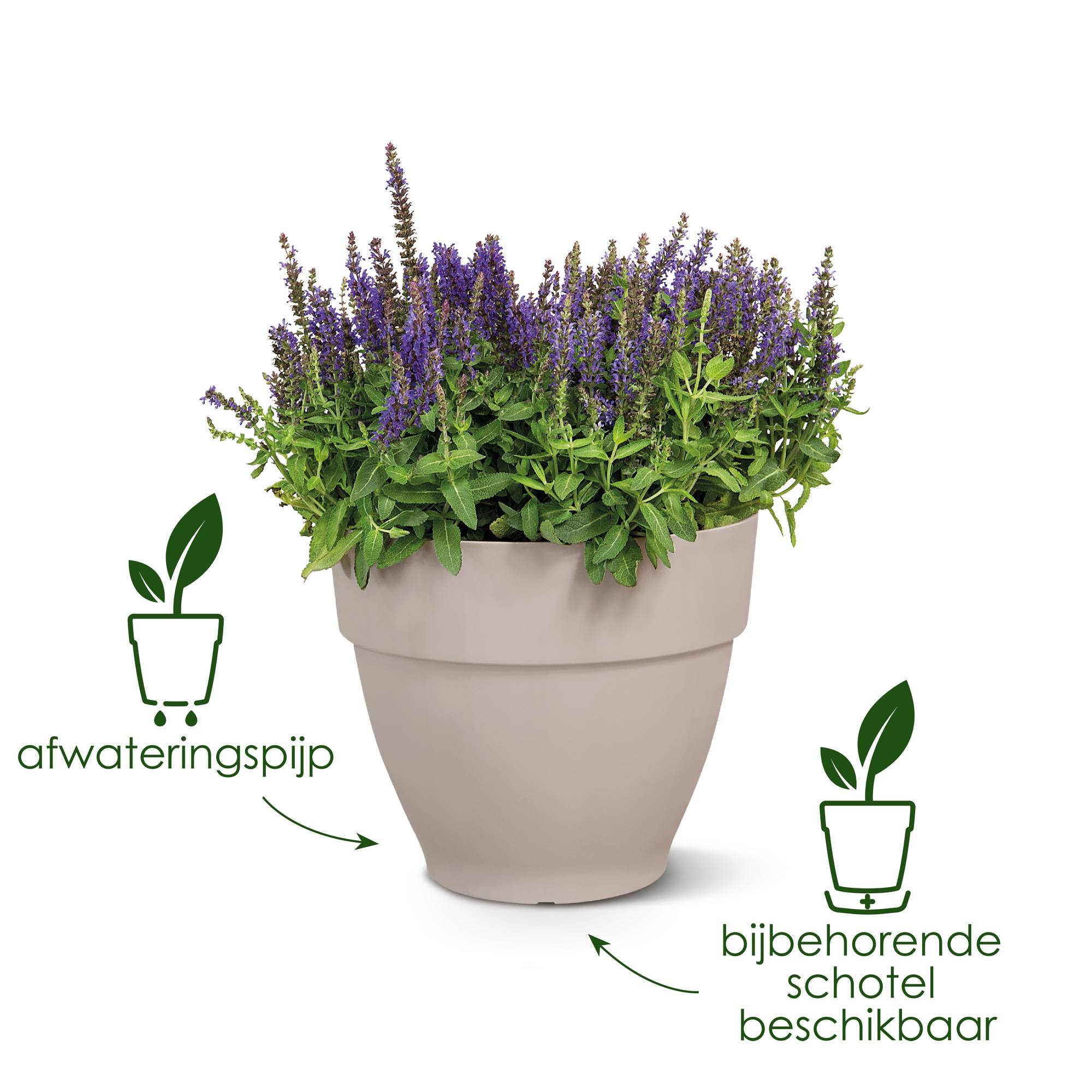- De pot is vorstbestendig en geschikt voor ieder tuinseizoen.