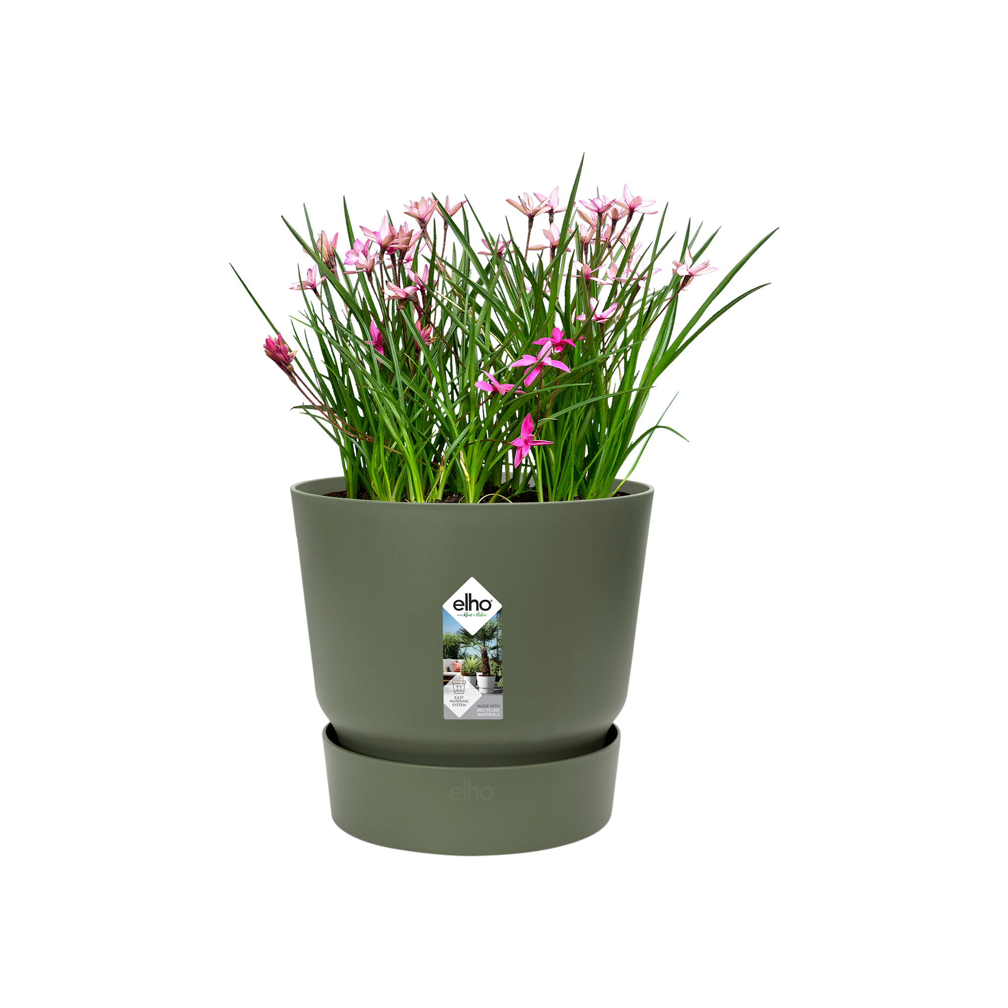 In der greenville-Kollektion vereinen sich elegante Designtrends mit einer praktischen, intelligenten Lösung zur Pflanzenpflege. Hinter der klaren, nahtlosen Aufmachung dieses Designer-Pflanztopfes verbirgt sich ein praktisches integriertes Wasserreservoir, das Ihre Pflanzen gleichmäßig mit Feuchtigkeit versorgt. Der Pflanzbehälter wird in verschiedenen natürlichen Farben angeboten und ist der ideale grüne Begleiter für Haus und Garten. Da wir bei elho die Natur nicht nur uns näherbringen wollen, sondern diese auch bewahren, besteht dieser Pflanzbehälter aus 100 % recyceltem Material.