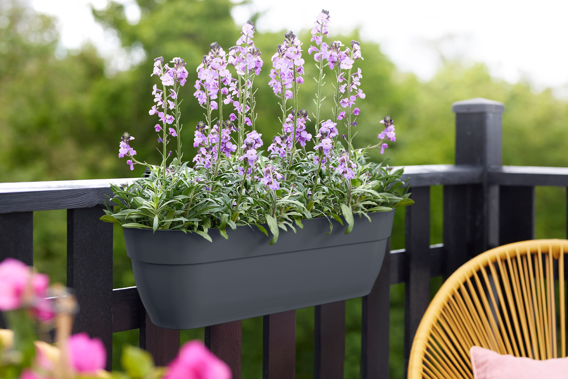 Hol dir die Natur auf deinen Balkon, mit dem elho vibia easy hanger XL. Dieser großzügige Balkonkasten ist leicht und kann ganz einfach an Geländern mit einer Breite von bis zu 6,5 cm befestigt werden, so verwandelst du deinen Balkon im Handumdrehen in ein grünes Paradies. Die flache Rückseite sorgt für Stabilität, während integrierte Überlaufrohre überschüssiges Wasser abführen und so für gesunde, kräftige Pflanzen sorgen. Der vibia easy hanger XL ist das perfekte Design für einen blühenden Balkon!