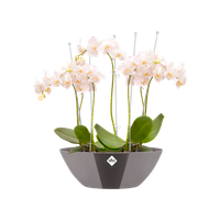 - Het is ideaal dat de bloempot van kunststof is en daardoor prima tegen een stootje kan.