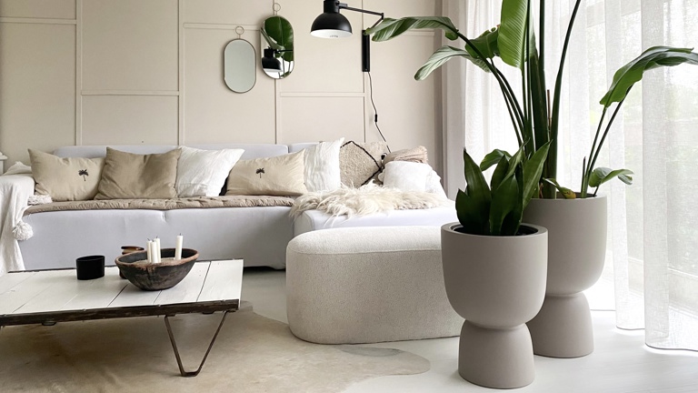 Ви теж хочете розпочати новий рік зі свіжим підхідом? Поєднайте велику кімнатну рослину з горщиком органічної форми у ніжному кольору — це додасть вашому інтер'єру більше спокою. Подумайте про наше кашпо у збалансованому бежевому кольорі. З ним ви зможете буквально поставити свою кімнатну рослину на п’єдестал.